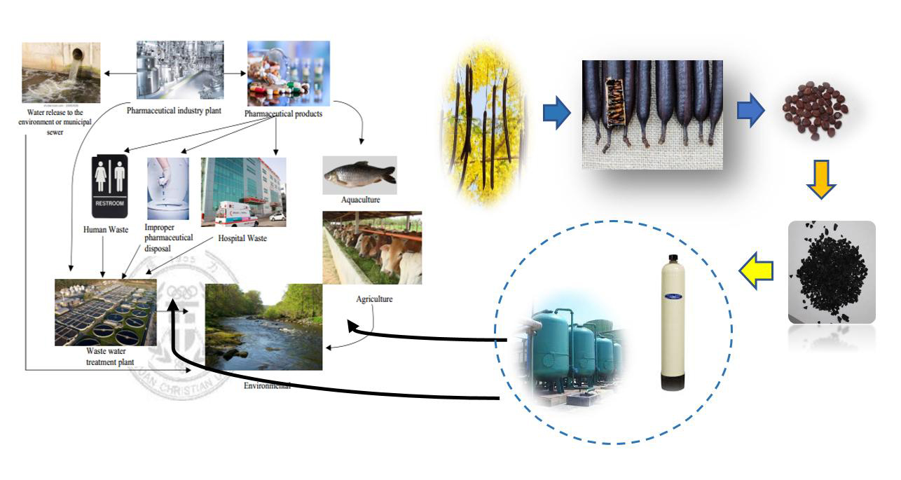 團隊利用過去農業廢棄物轉化技術,選用台灣常見的阿勃勒果實製備高值化吸附材,並建立模組,提供小農過濾灌溉用水,避免污染物進到農田,用好水種植好的農產品。